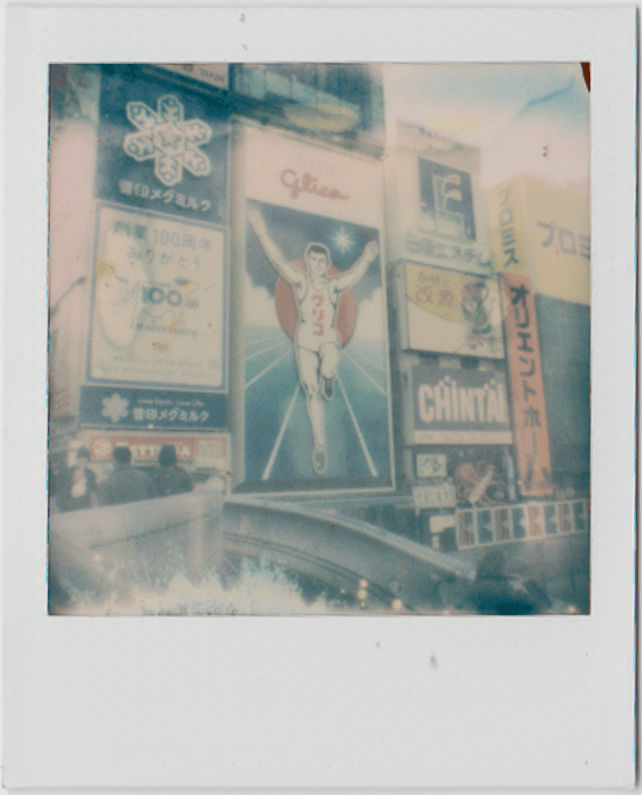 glico sign through polaroid